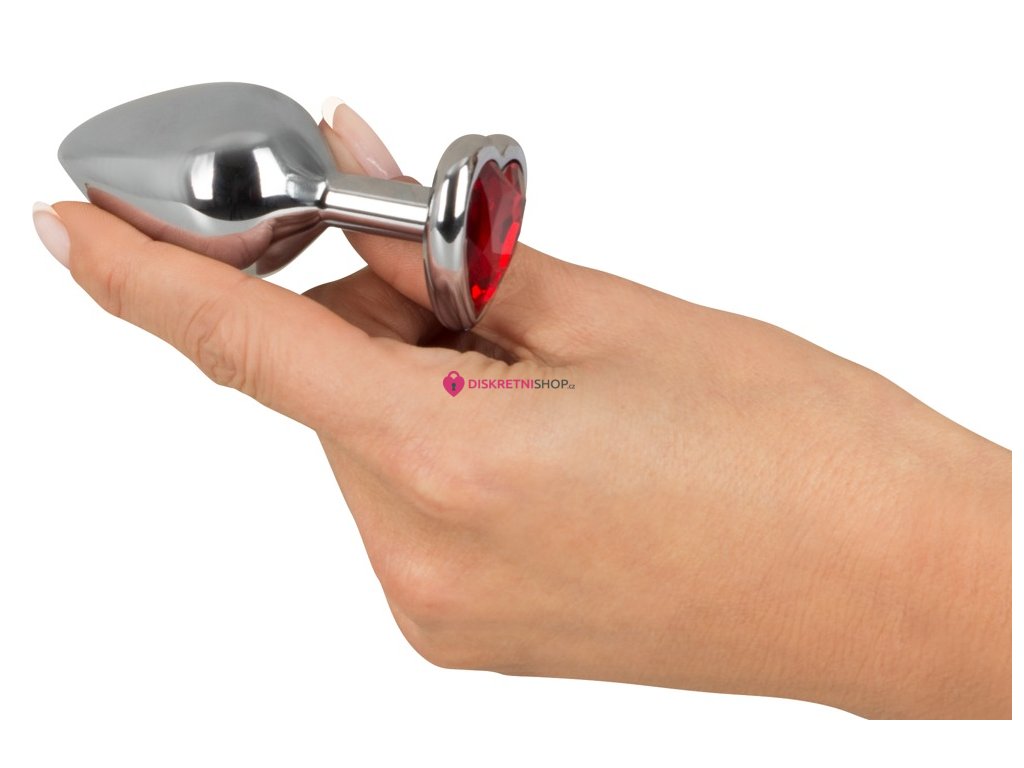 Diamond Butt Plug Medium od You2Toys je vyrobený z hliníku a zaujme kuželovým tvarem a červeným krystalem ve tvaru srdce. Příjemná hmotnost podporuje intenzivní vnímání i anální roztažení. Bezpečná zarážka umožňuje pohodlné a dlouhodobé nošení. Vhodný i pro teplotní hry.