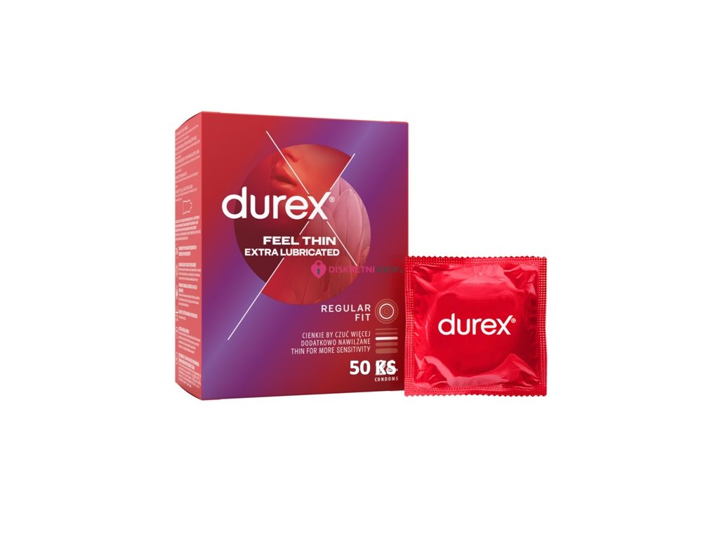 Kondomy Durex Feel Thin Extra Lubricated (starší názvy Elite Extra Lubricated, Fetherlite Extra Lubricated, Surex Sensitivo atd.) jsou extra lubrikované pro hladší pocit. Pokud nemáte rádi sex, při kterém cítíte kondom ze silnějšího materiálu, vyzkoušejte tyto kondomy Feel Thin a zažijte úplně jiný pocit.
