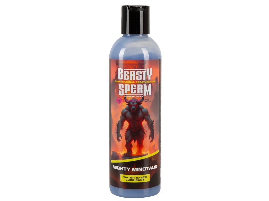 Lubrikační gel Beasty Sperm Mighty Minotaur od Beasty Cocks v originální šedo-modré barvě zaujme hustší konzistencí a fantasy pojetím. Vodní, veganské složení je bez zápachu, chuti i mastnoty a je bezpečné pro kondomy i erotické pomůcky. Ideální pro intenzivní hry, tematické fantasy zážitky i zábavné speciální momenty.