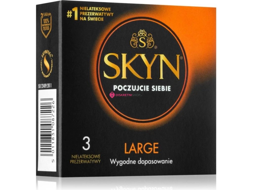 Extra široký nelatexový kondom Mates Skyn Large, pro zákazníky, kteří potřebují větší kondom a zároveň on nebo partnerka mají alergickou reakci na latex.