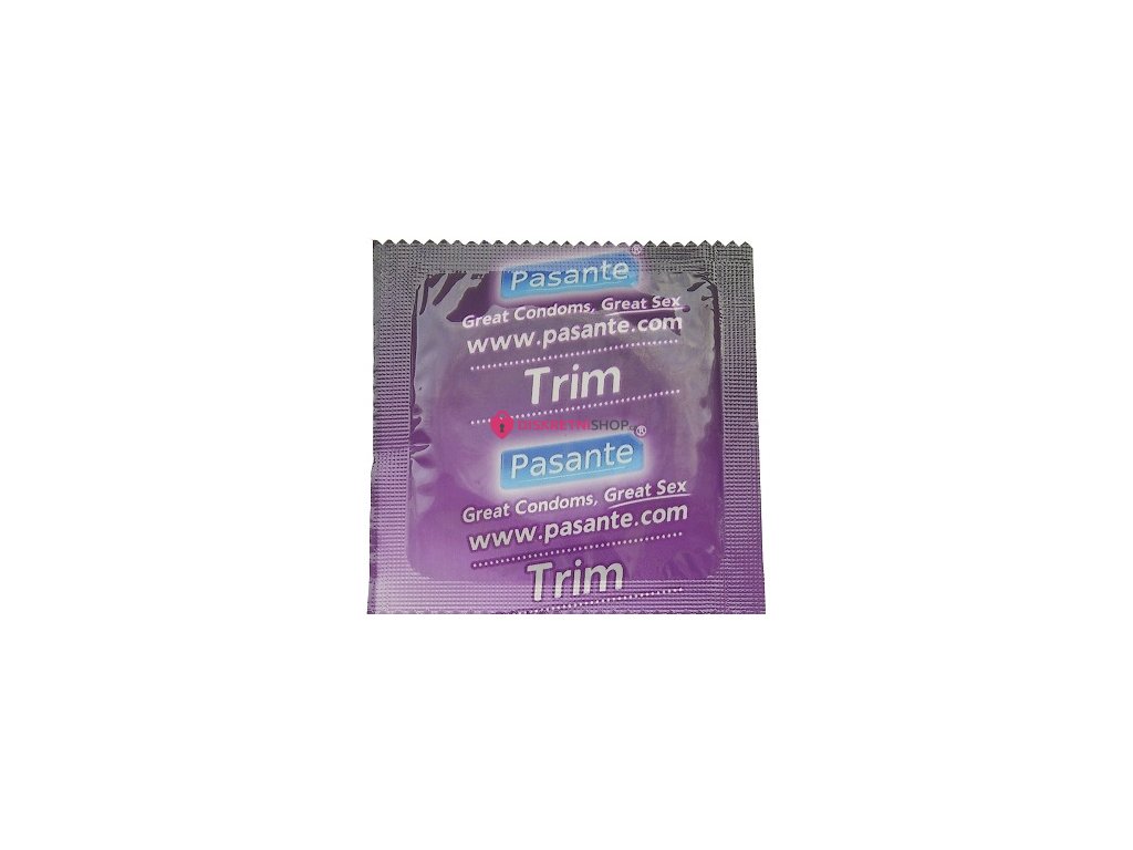 Klasické Pasante kondomy Trim menší velikosti určené pro lidi trpící s problémy s vyvlékáním nebo nedostatečným uchycením kondomu během styku. Vlhčeno silikonovým olejem. Alternativním výrobkem jsou německé kondomy My.Size ve velikostech 47 a 49 nebo Durex close fit (49mm).