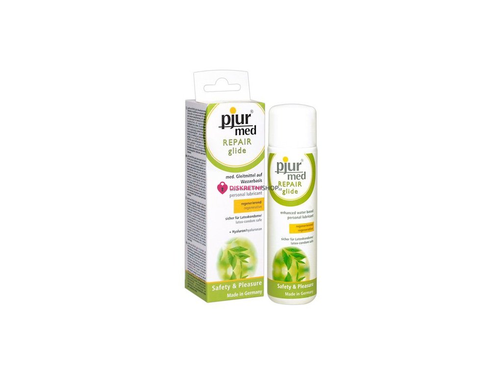 Lubrikační gel na vodní bázi Pjur Med Repair Glide obsahující kyselinu hyaluronovou, která napomáhá regeneraci suché a citlivé pokožky. Hyaluron má vynikající schopnost vázat velké množství vody a poskytnout tak nadprůměrnou lubrikaci a optimální regeneraci pokožky. Ideální na lubrikaci a úlevu od suché a podrážděné vaginální sliznice. Vhodné i na použití s kondomem. Dermatologicky a klinicky testované. Vyrobené v Německu.